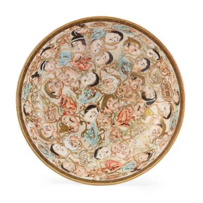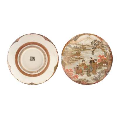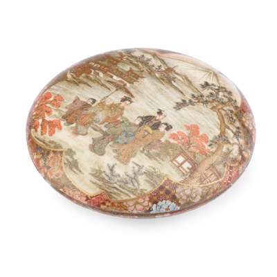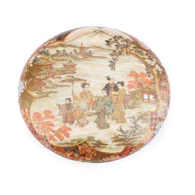 明治至大正 錦光山、陽山、 軍▢山款 薩摩燒‘能面’碗、‘人物’圓蓋盒 及 ‘楓’瓶