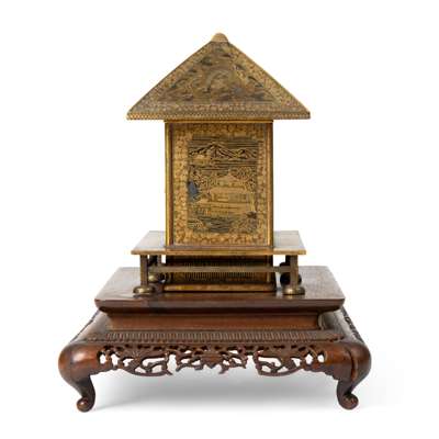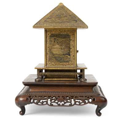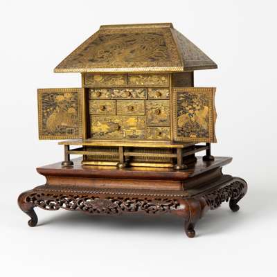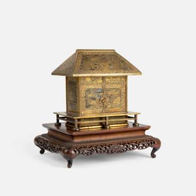 Note: a comparable Komai cabinet in the form of a temple was in the Avo Krikorian Collection and sold at Christie's Geneva, 19 Feb 2007, lot 86