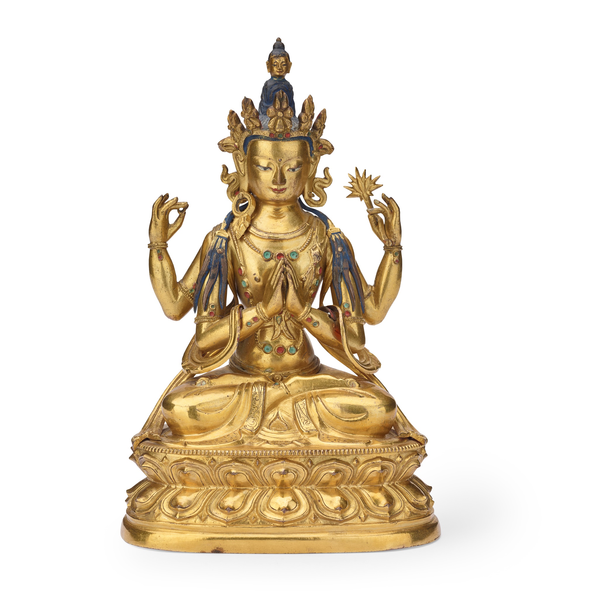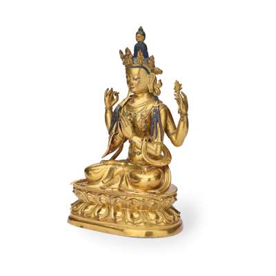 CAST AND REPOUSSÉ GILT BRONZE FIGURE OF CHATURBHUJA LOKESHVARA