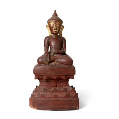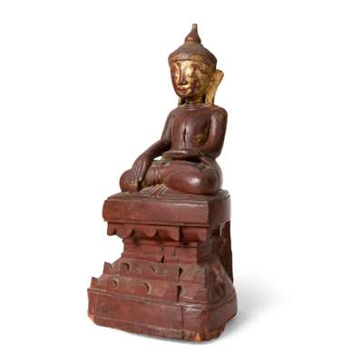 十八至十九世紀 緬甸撣族風格 紅漆鎏金釋迦摩尼佛座像