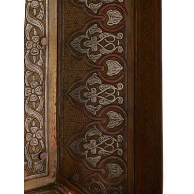 MAMLUK REVIVAL COPPER AND SILVER INLAID BRASS CASKET