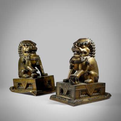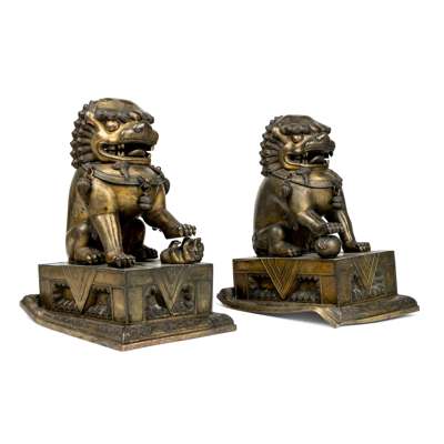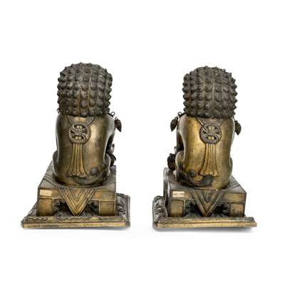 PAIR OF LARGE BRONZE BUDDHIST LIONS