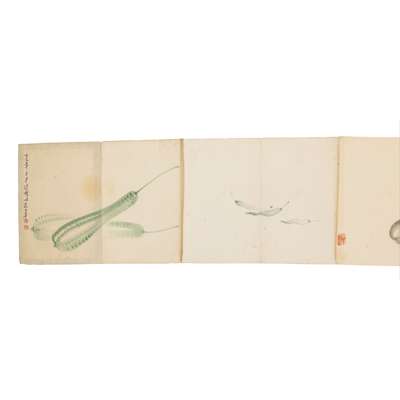 ink and colour on papers, bound in two albums; one album with eleven works, the other nine, beginning of the same album inscribed with a poem and signed Jiang Biwei (1899-1978), most individual works signed and or sealed, dated to the winter of Ding Si year, corresponding to 1917AD