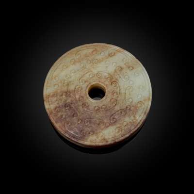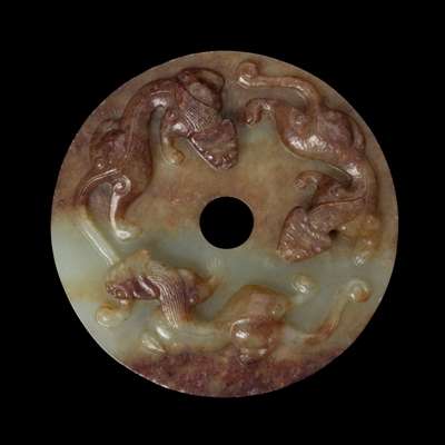 PALE CELADON JADE WITH RUSSET SKIN 'CHI-DRAGON' DISC