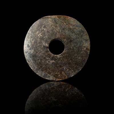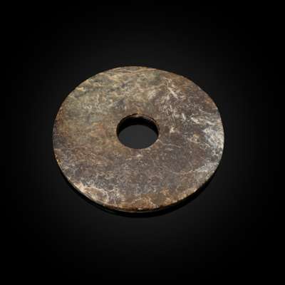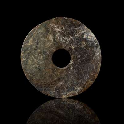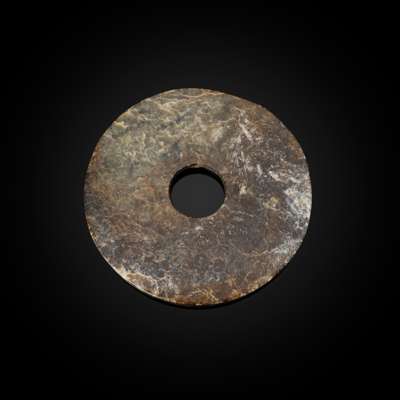 MOTTLED DARK BROWNISH-GREEN JADE DISC, BI