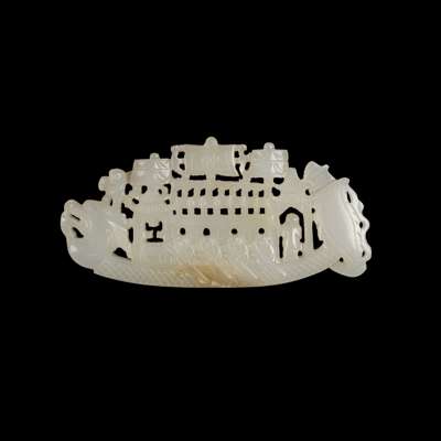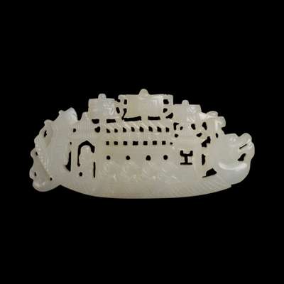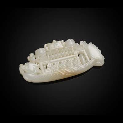 WHITE JADE RETICULATED 'DRAGON BOAT' PLAQUE