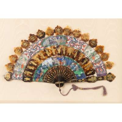 清 玳瑁描金彩繪人物圖扇 鏡框