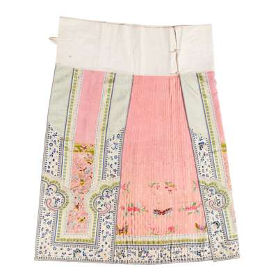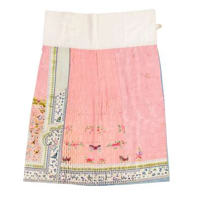 清末民初 粉紅地刺繡花鳥紋馬面裙