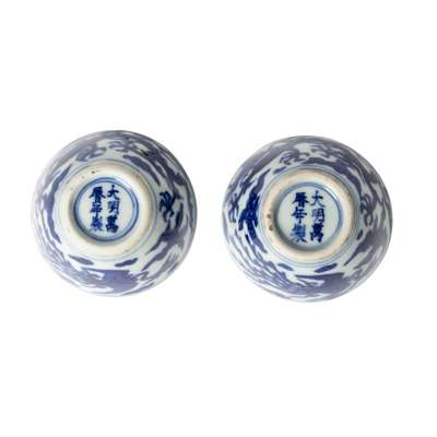 萬曆款或到代 青花龍鳳紋對杯(共兩件)