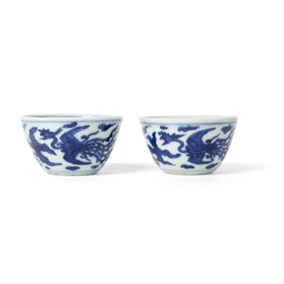 TWO BLUE AND WHITE 'DRAGON AND PHOENIX' CUPS