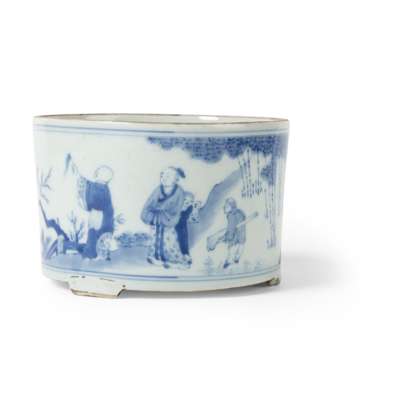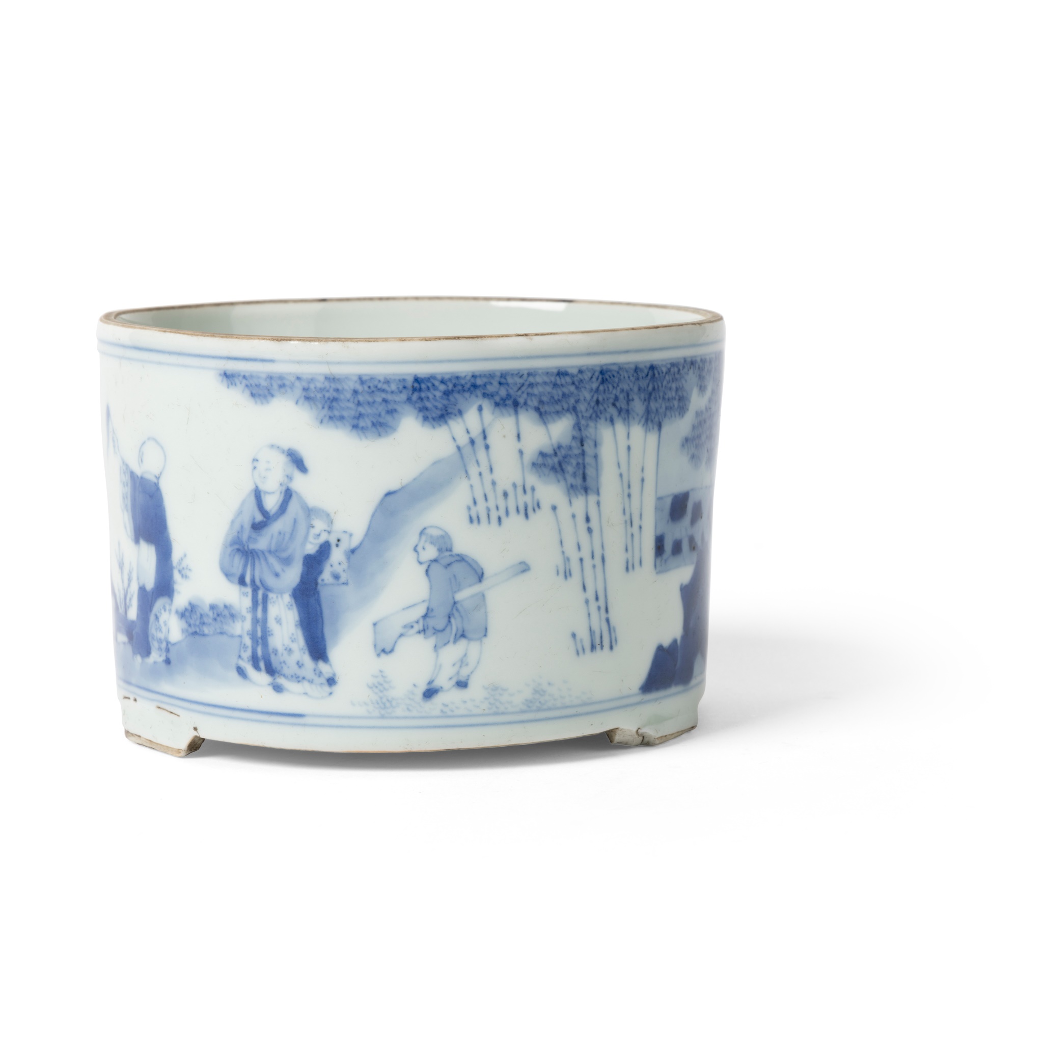清 青花高士三足筒爐