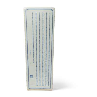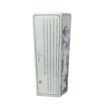 BLUE AND WHITE INSCRIBED SQUARE-SECTION 'ODE TO THE RED CLIFF' VASE