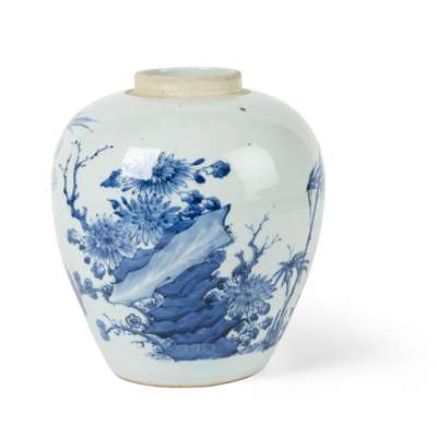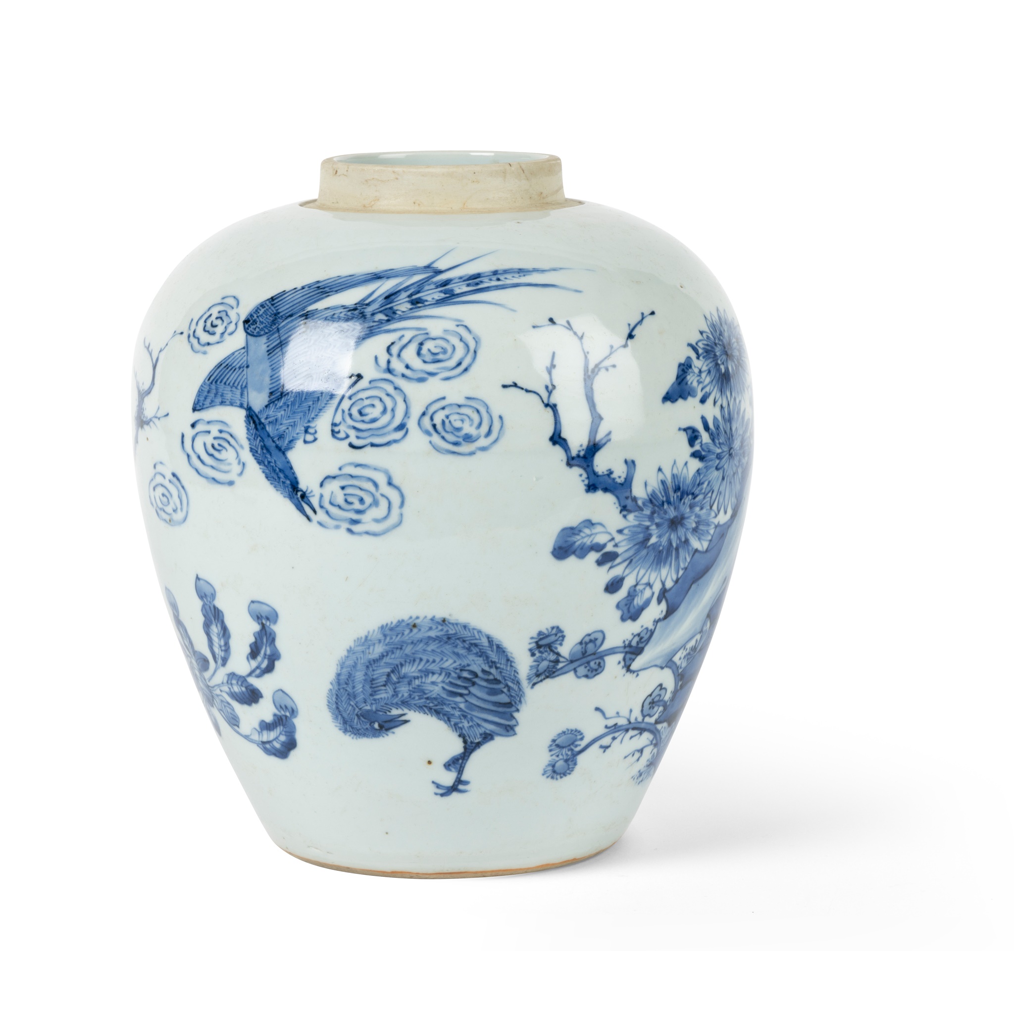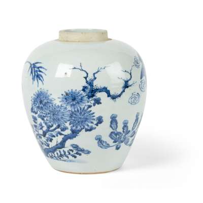 BLUE AND WHITE 'FLOWER AND BIRD' GINGER JAR