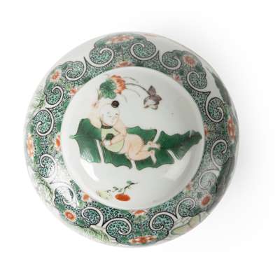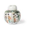 清 綠彩仕女嬰戲圖蓋罐