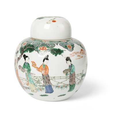 FAMILLE VERTE 'LADIES AND BABY' GINGER JAR AND COVER