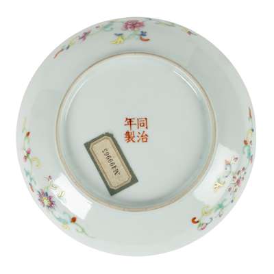 Note: A plate of closely comparable design inscribed with Tongzhi mark was custom-made for Tongzhi emperor's wedding in 1872, is in the collection of the Palace Museum, Beijing.