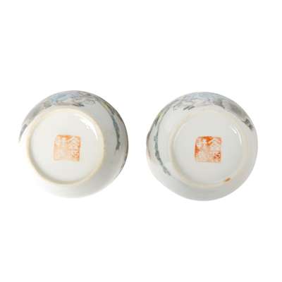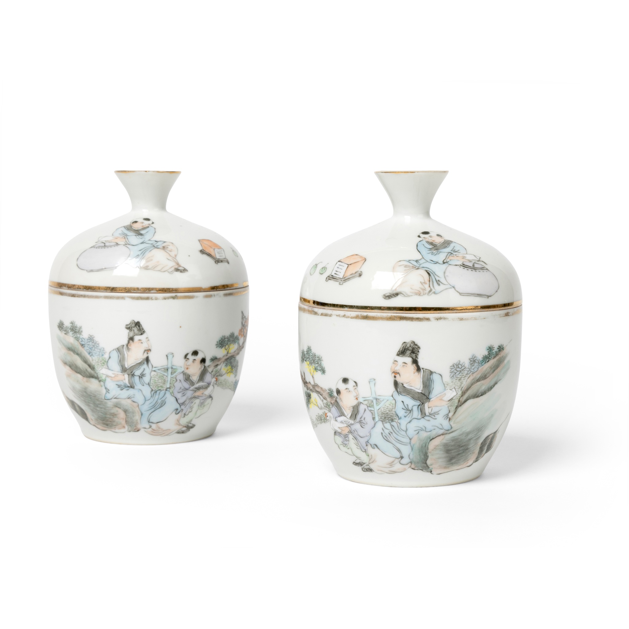 PAIR OF FAMILLE ROSE LIDDED TEA CADDIES