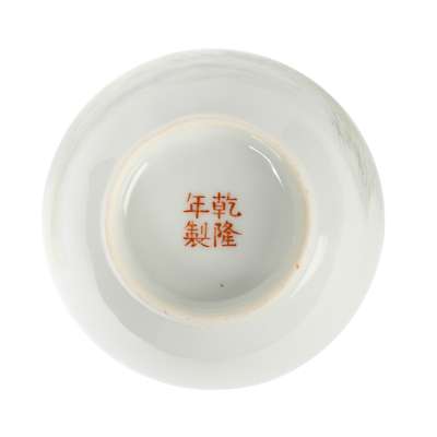 二十世紀 何許人款 乾隆底款 粉彩鴛鴦題詩紋瓶