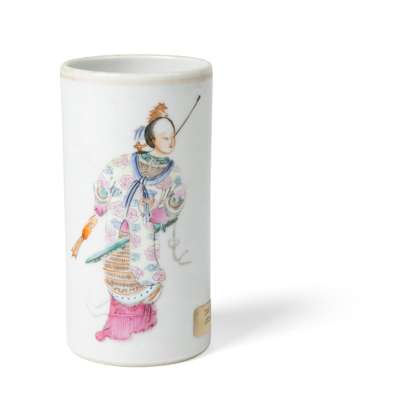 清道光款及年代 粉彩無雙譜‘譙國夫人’筆筒