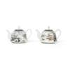 二十世紀 余文襄款 墨彩粉彩雪景圖題詩茶壺(共兩件)