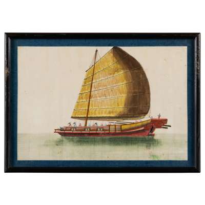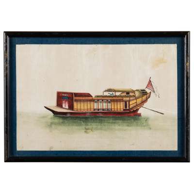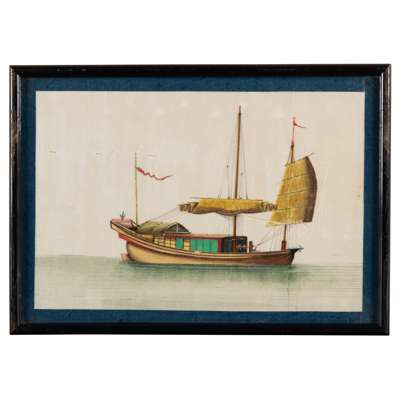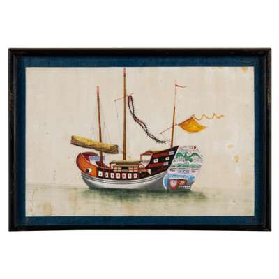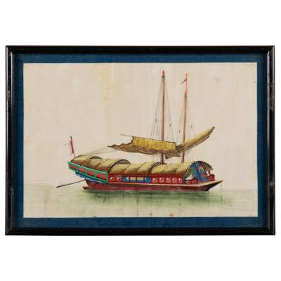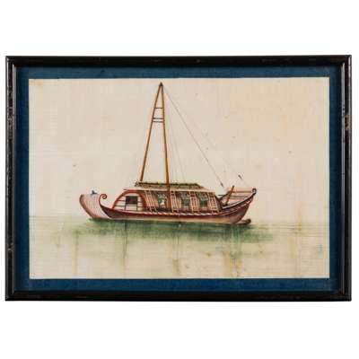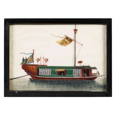 清 外銷通草紙畫各式船舶圖 鏡框(共十三幅)