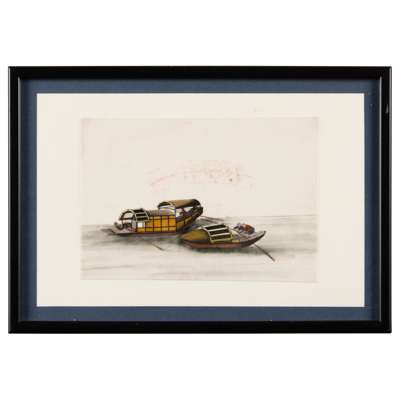 gouache on pith paper, finely depicting various ships, junks, and boats with figures, all framed
