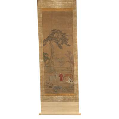 INK SCROLL 'GROOM WITH HORSES' PAINTING
