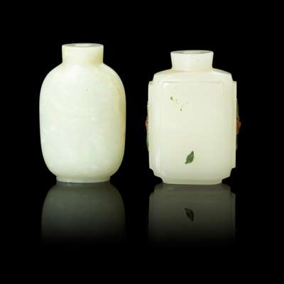 TWO PALE CELADON JADE SNUFF BOTTLES