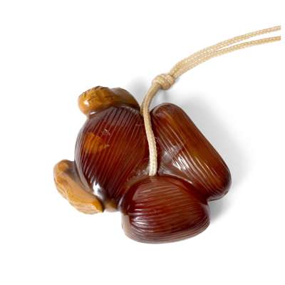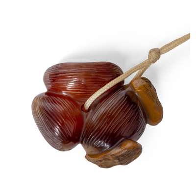 Note: A comparable carved chalcedony peanuts and jujube dates, dated to the Qing Dynasty, 18th century, is in the collection of the Metropolitan Museum, accession no. 02.18.895; Also compare to an agate 'peanut and jujube' pendant, Qing dynasty, 19th century, sold at Sotheby's Hong Kong, 26 May 2021, lot 171; A Chinese carved agate toggle attached on a Japanese inro was sold at Bonhams New York, 19 Sep 2008, lot 5041
