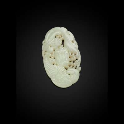 PALE CELADON JADE 'DRAGON AND PHOENIX' PENDANT