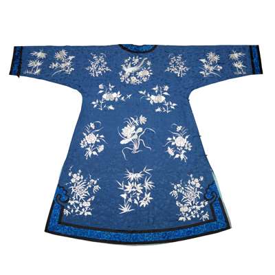 BLUE-GROUND SILK EMBROIDERED LADY'S ROBE