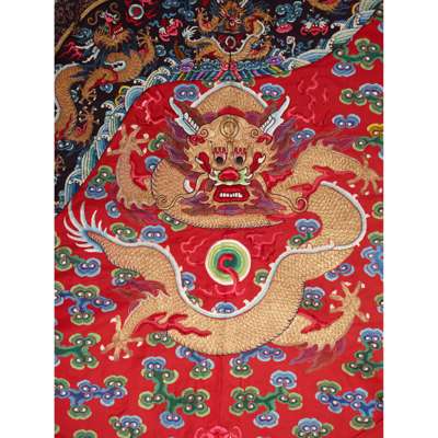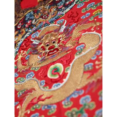 RED-GROUND 'DRAGON' ROBE, JIFU