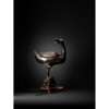 cast standing with one leg on a three-legged toad, head turned to the right and beak ajar, the wings with plumage finely rendered and opening up to the vessel, on a bespoke wooden stand