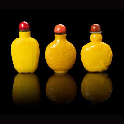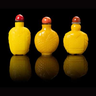 GROUP OF THREE YELLOW GLASS SNUFF BOTTLES
