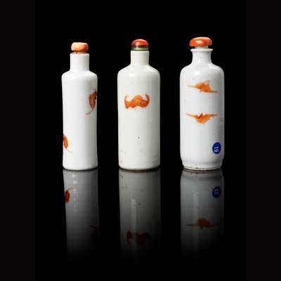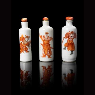 清 礬紅彩鍾馗圖鼻煙壺(共三件)