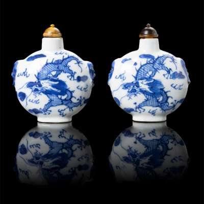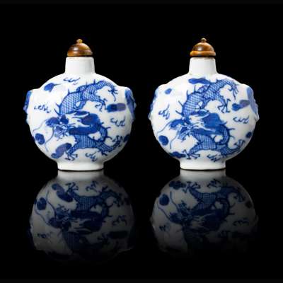 清 青花龍紋獸耳鼻煙壺(共兩件)