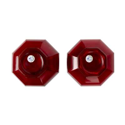 PAIR OF OCTAGONAL RUBY-RED GLASS VASES