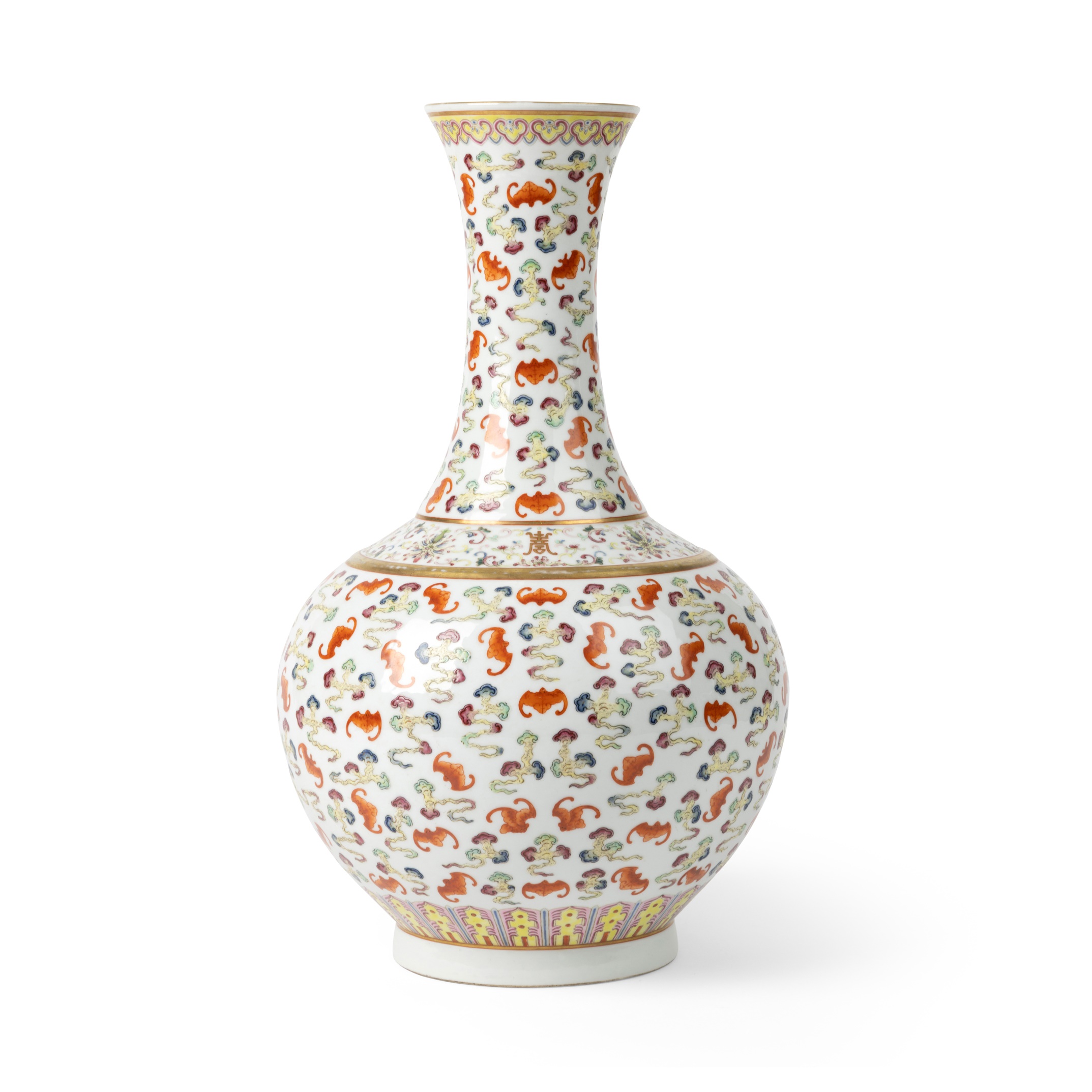 FAMILLE ROSE 'BATS' BOTTLE VASE
