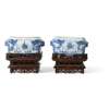 清 道光款 青花龍捧珠紋委角方盆 帶木座(一對)