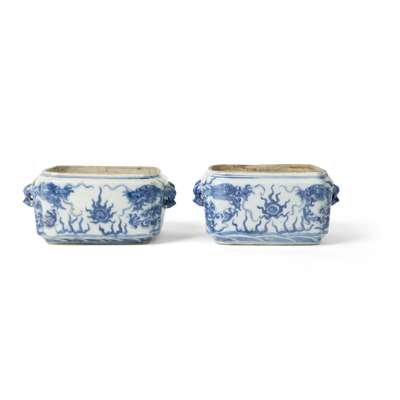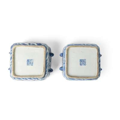 PAIR OF BLUE AND WHITE 'DRAGON' SQUARE POTS
