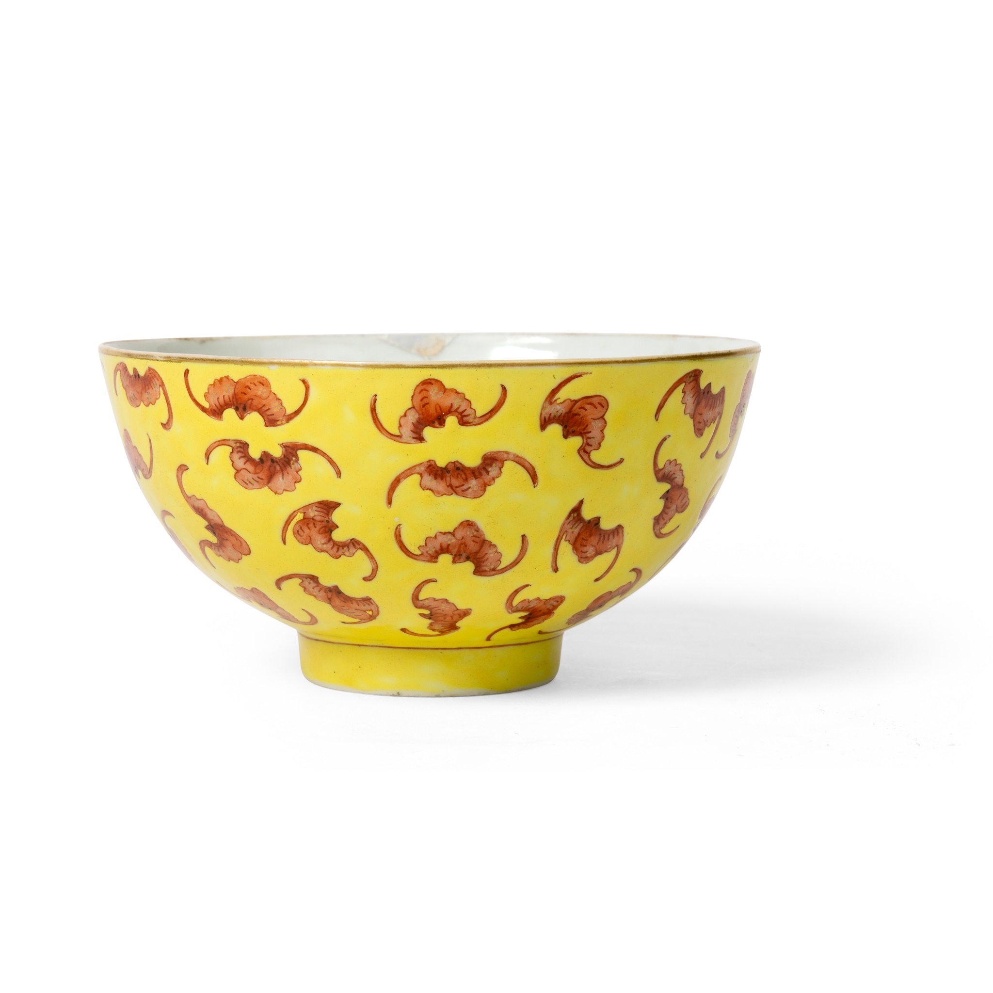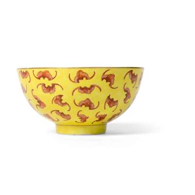 YELLOW-GROUND IRON-RED-DECORATED 'HUNDRED BAT' BOWL