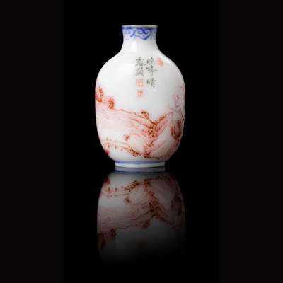 十九至二十世紀 乾隆款 琺瑯彩山水詩文料器鼻煙壺