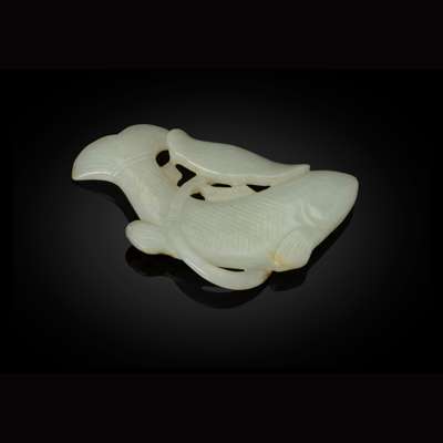 或為元代 白玉帶皮雕鯉魚蓮花吊墜