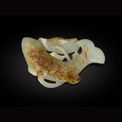 WHITE JADE WITH RUSSET SKIN CARVING OF A CARP