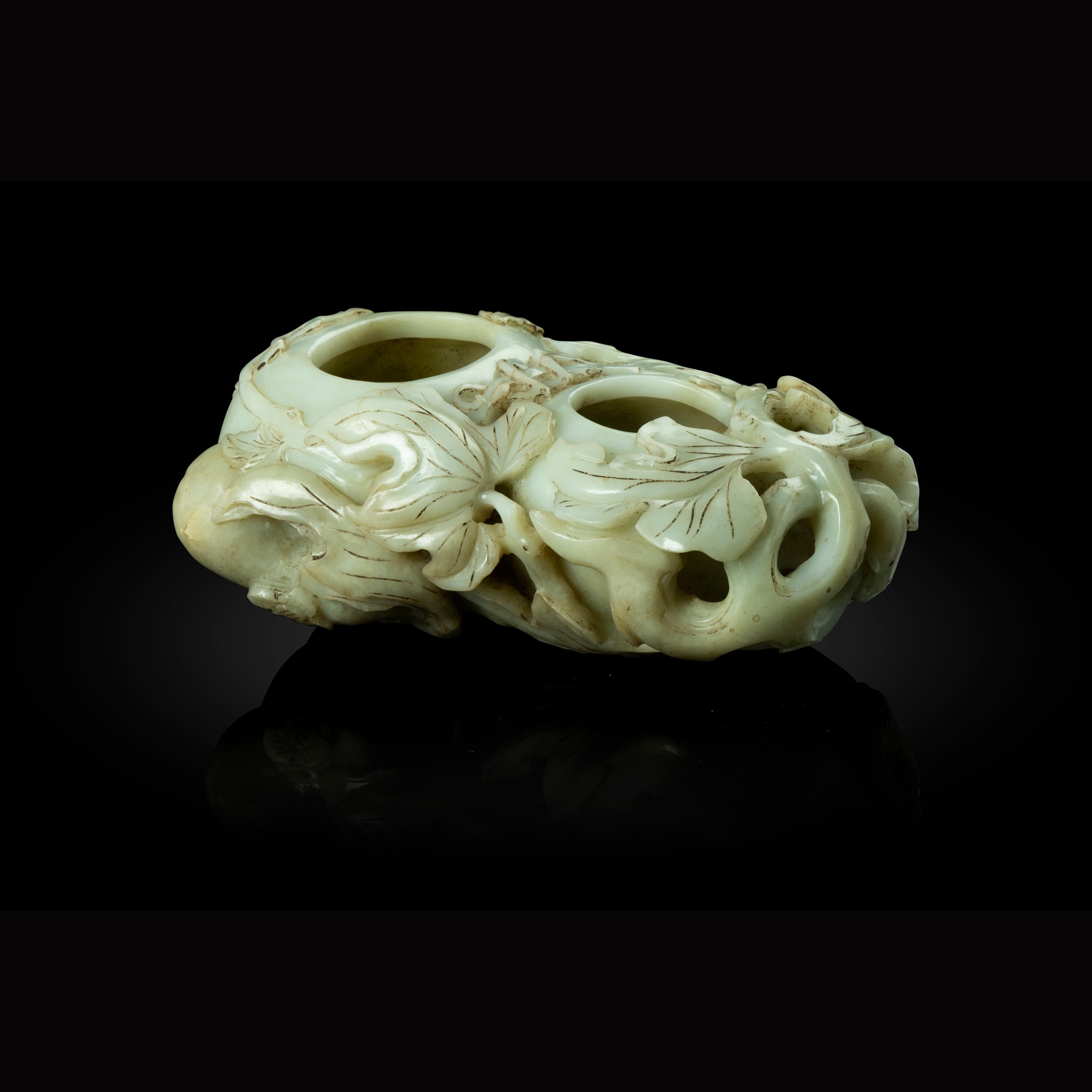 PALE CELADON JADE 'DOUBLE-GOURD' BRUSH WASHER