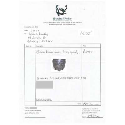 Provenance: Nicholas S Pitcher, 7 November 2017, with an original receipt.