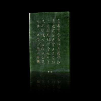 十九至二十世紀 碧玉描金雕騎鹿羅漢詩文插屏