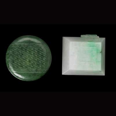 十九至二十世紀 碧玉雕包袱式水滴 及 翡翠雕靈芝長方形水滴