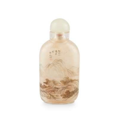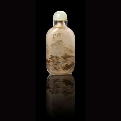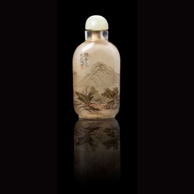 畢榮九款 玻璃内畫山水圖鼻烟壺