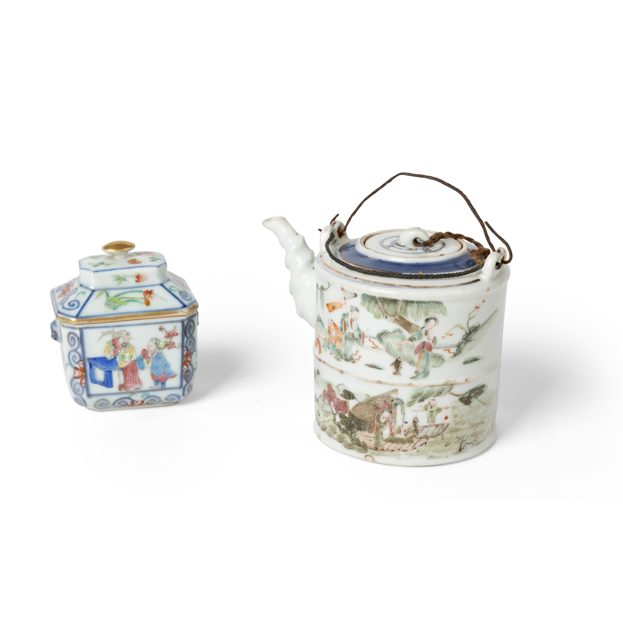 十九至二十世紀 粉彩人物題詩紋茶壺 及 人物紋長方委角蓋盒